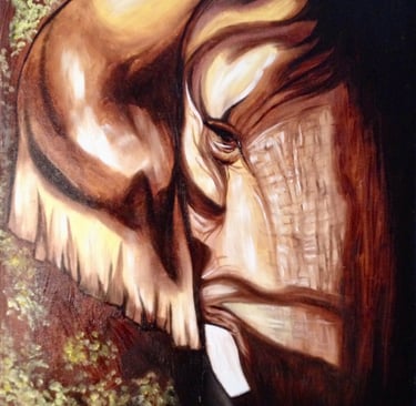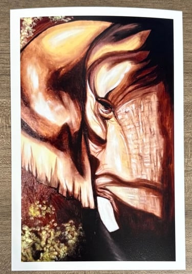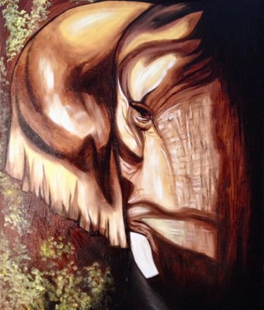 This elephant here was my very first oil painting. It captures the exact moment in time where I realized just how much I loved working with oils and so my journey began.